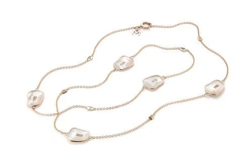 Puzzle ketting van 90cm in roségoud met naturel parelmoer Puzzle elementen.